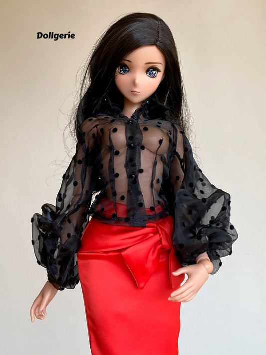 Long Puffy Sleeve Mesh Sheer Blouse for SmartDoll or DD