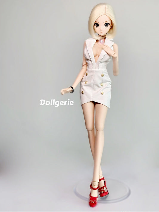 Sleeveless Mini White Tux Deep-V Dress for SmartDoll