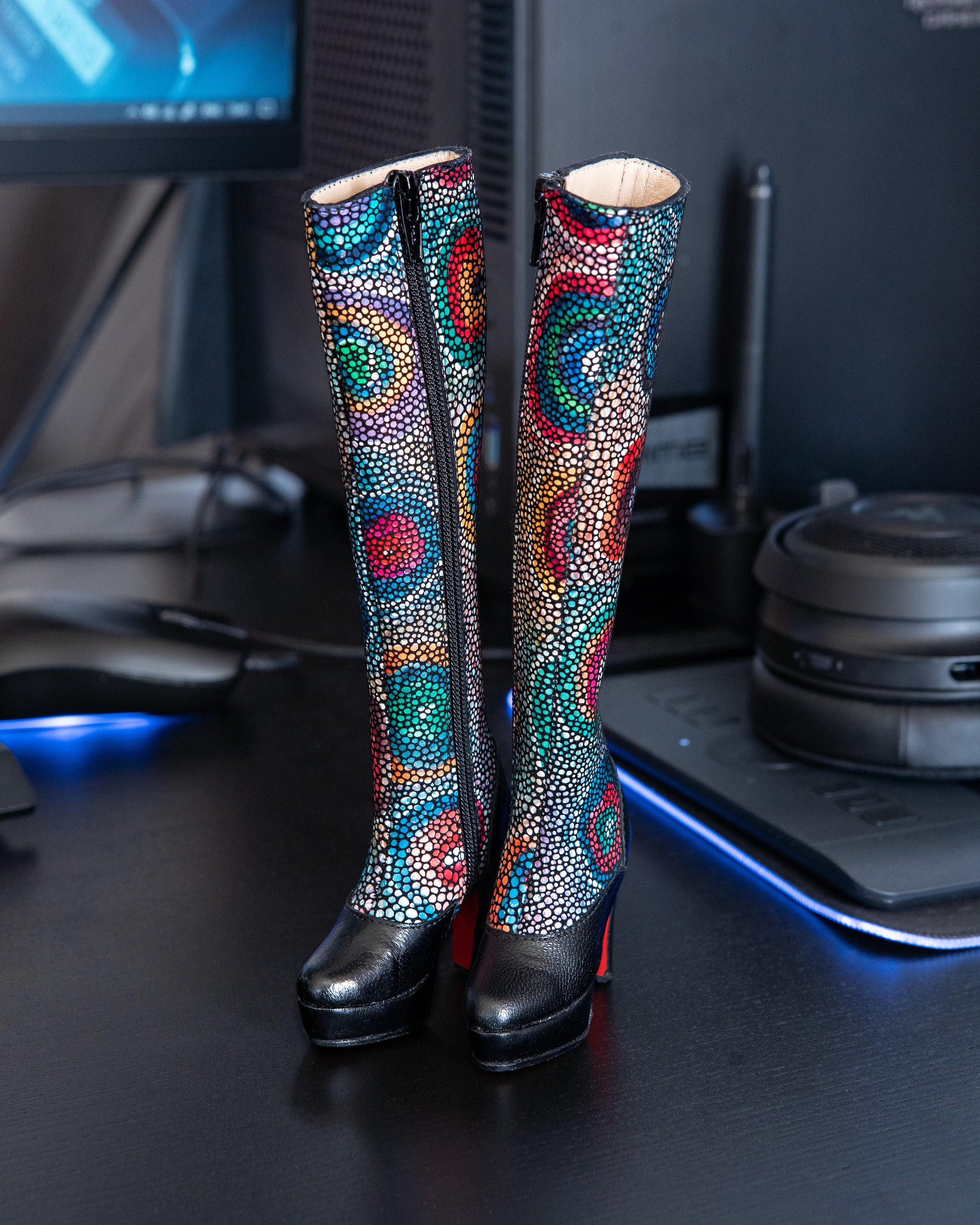 We have this prototype available for Smardoll leg. It made in a bright color palette that some one called Gaudi boots. It is definitely something unique. Manufactured in Spain, genuine leather, lined with skin tone leather inside. feel free to text us on instagram with any questions.