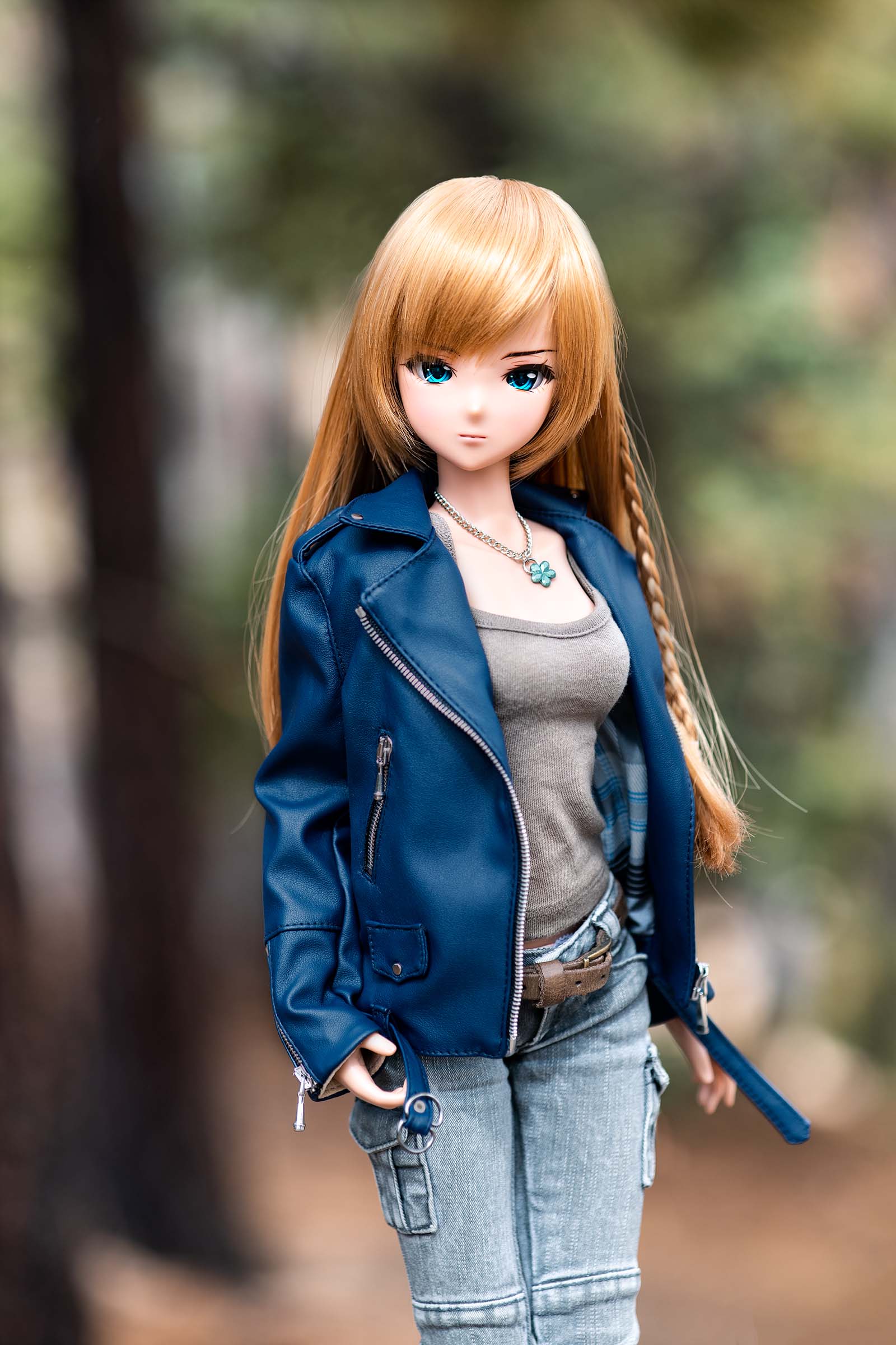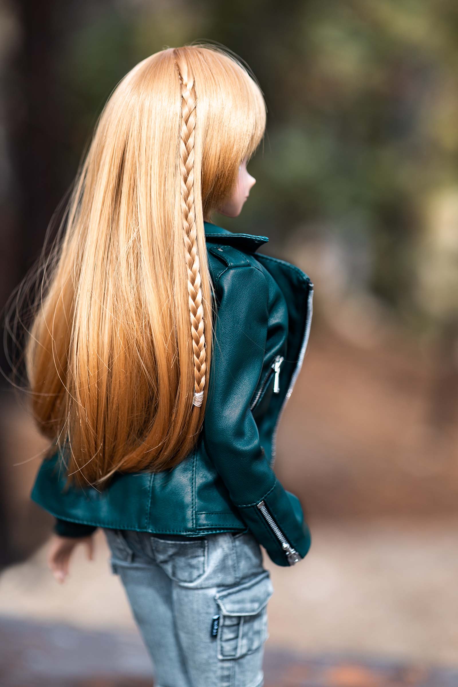 TiTo continue her line of jackets for Smartdolls. This model named Harley Jacket, it is a bit more spacious then previous variants, so that sleeves can accommodate warm sweater under it. Jacket was designed taking into account that smartdoll want to sit on a motorbike without getting cold. Her vinyl back protected well from the rear. It looks much better then doll is sitting