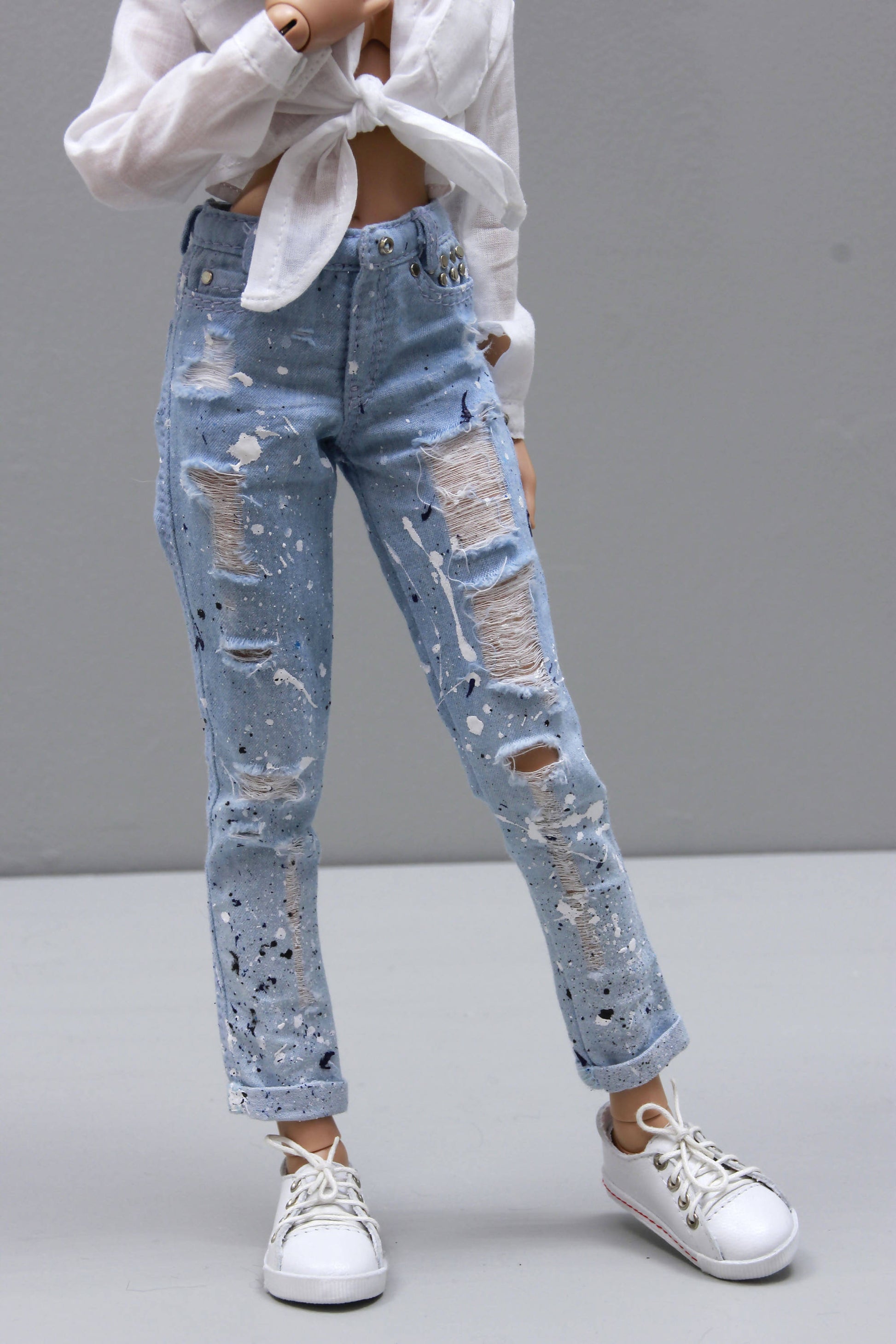 Jeans for Minifee, Black and white splashes, 1/4 MSD bjd