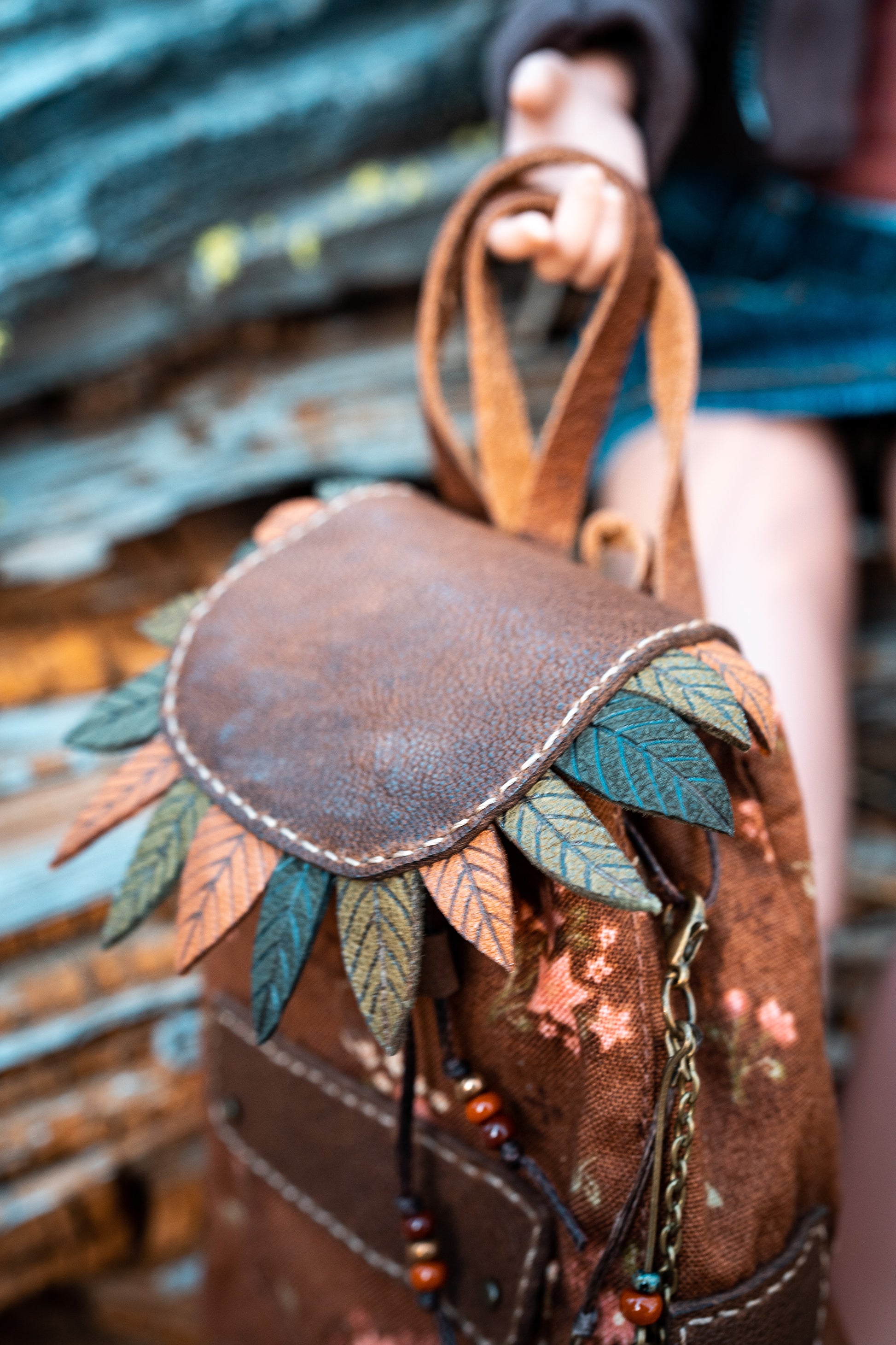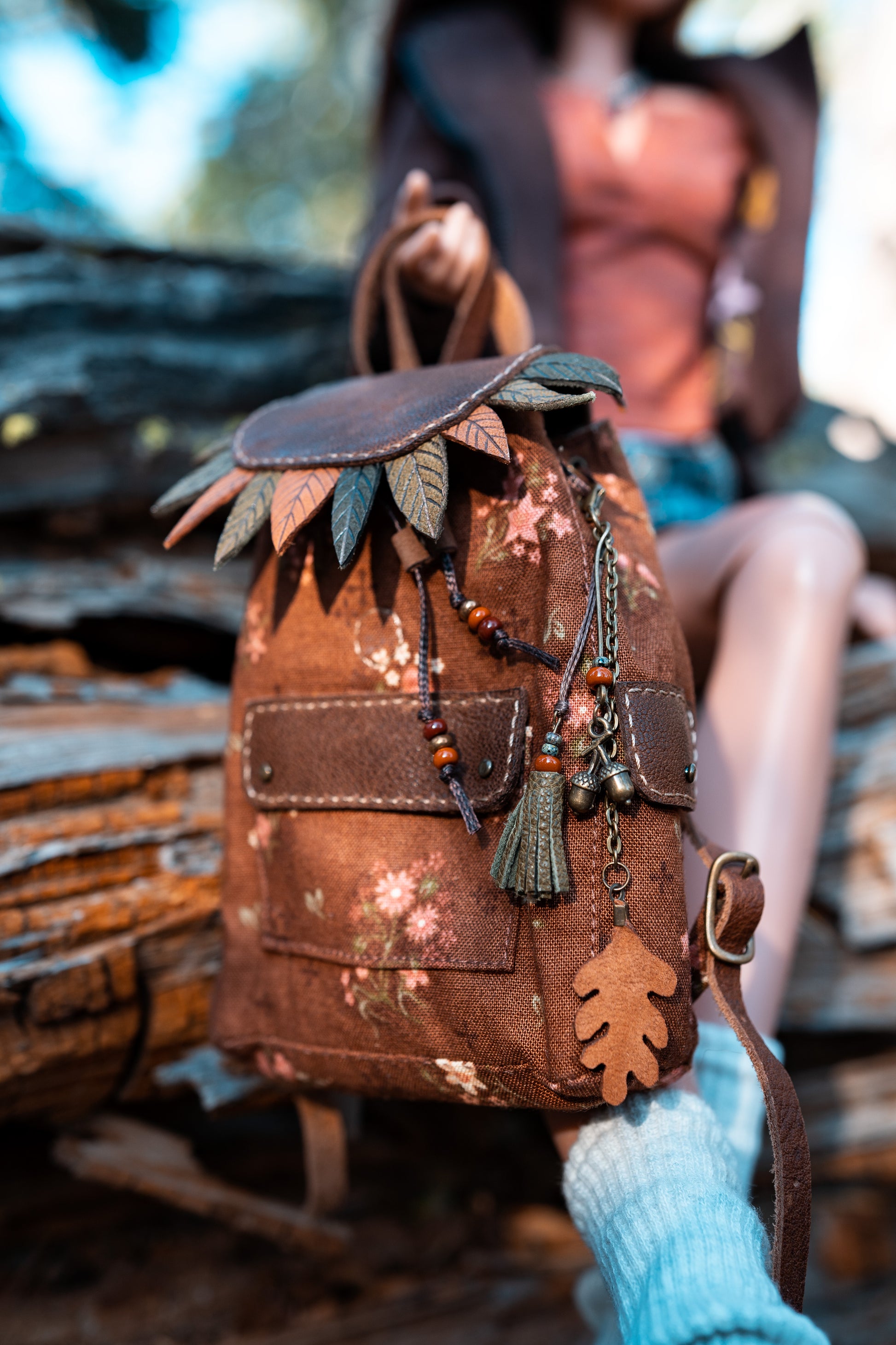 Comfortable bag for 1/3 doll. Looks great and spacious enough to carry all forest findings as well enough snack and magic potions for a day trip :) Themed in oak style.